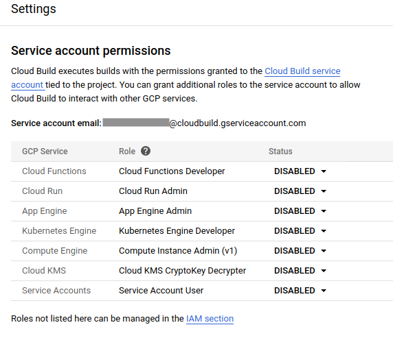 To avoid future issues with image build and Google Cloud permissions, you must allow permissions for Google Cloud build (more information here).